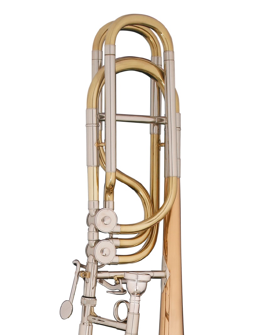 • Bb-F / Gb-D key• One-piece hand-hammered yellow brass bell with rim-wound reinforcement• 241 mm bell diameter• 14.3 mm) bore• Cupronickel and nickel silver slides• Clear lacquer finish, cuper, nickel, yellew brass• Mouthpiece, cleaning kit, and hard case